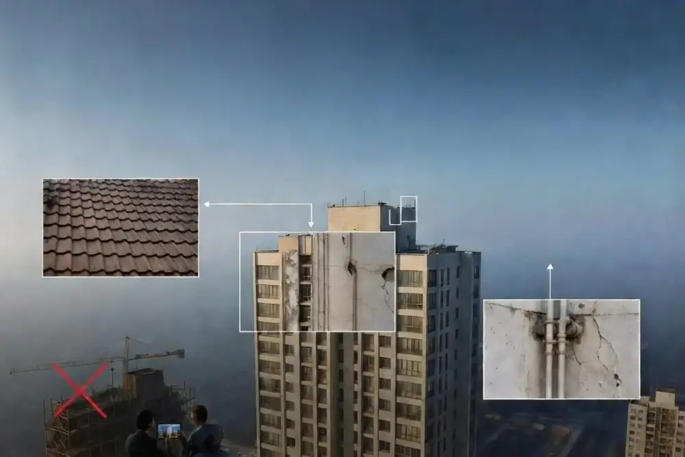 איתור ליקויי בניה באמצעות צילום אווירי מקצועי. בדיקת גגות, חזיתות ומבנים ללא פיגומים – בטוח, מהיר וחסכוני. ShotSky – שובל נחמן.